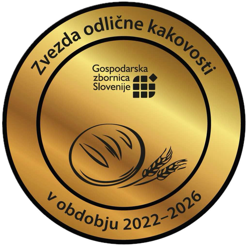Ponosno izpostavljamo svojo zavezanost kakovosti in odličnosti skozi različne certifikate in nagrade. Naši izdelki nosijo certifikat IFS, ki zagotavlja spoštovanje najvišjih standardov varnosti hrane in kakovosti. Kot del Bled Local Selection poudarjamo svojo predanost lokalnim sestavinam in tradicionalnim praksam. Naš certifikat V-label potrjuje našo zavezanost različnim prehranskim potrebam. Poleg tega smo prejeli zlato in zvezdico nagrade pri Gospodarski zbornici, kar praznuje našo izjemno kakovost in okus.